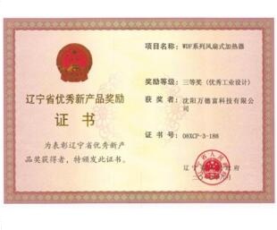 遼寧省優(yōu)秀新產(chǎn)品獎(jiǎng)勵(lì)證書